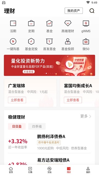 2、【买卖】股票基金投资理财债券,品类多样任君配置。3、【投资理财】平台甄选商品多元,贴心服务共赢幸福。