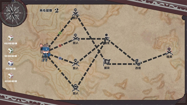 3、当角色走到敌人或者精英上玩家需要击败敌人才能前进,玩家需要拖动单个骰子或是点击按钮来进行投掷;