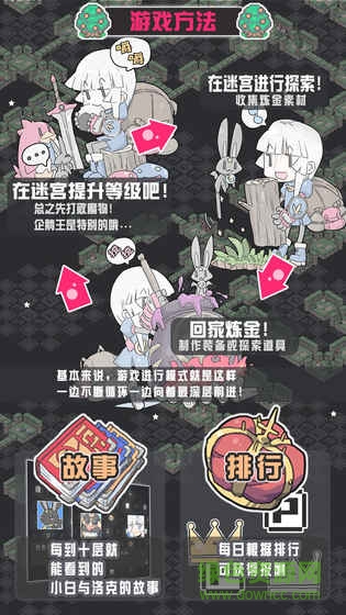 操作炼金术师菜鸟在地下迷宫中探寻素材,合成各种装备和道具吧!