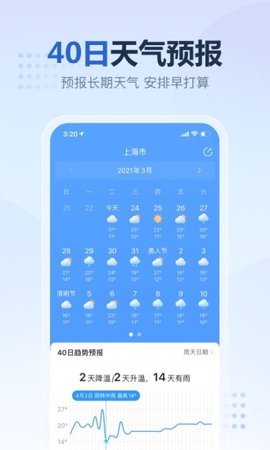 业内首创40天气预报功能,提供超长期天气预报,风云变化一手学会!