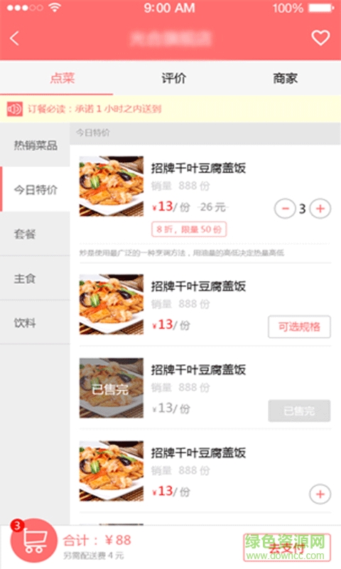 一品外卖app是一款专注于手机订餐的软件,为用户用餐提供了便捷。有了这款软件,用户就能知道更多的美食信息,并可以直接在线订餐,企业就会送将美食送到用户的手上,便捷又快捷。有需要的用户可以来绿色资源网下载。