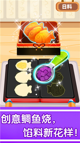 开始烹饪厨房美食——乌冬面啦!想要乌冬面更美味?用昆布煮出汤汁是美食诀窍哦。再加入柴鱼片组合、面条小分队,大火烹饪,美味的乌冬面新鲜出炉咯!5、烤丸子、炸面点,制作小吃