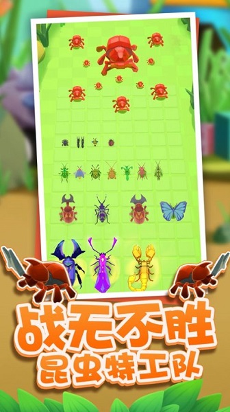 3.个性阵容:拒绝千篇一律,每个昆虫斗士都拥有我们的独特属性,都能发挥决定用途;
