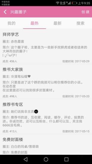 8、支持关注、粉、发布动态等社区功能,可以支持和关注自己喜欢的作者,和作者互动、催更9、可以创建和加入自己有兴趣的圈子,创建和塑造我们的帝国