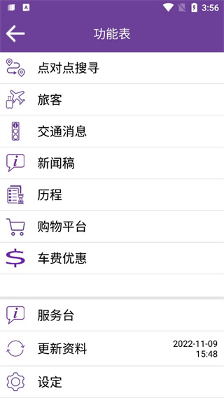 当开启应用程式时,程式会检查手机是不是已有最新的路线资料,并会在需要时自动进行更新。你亦可以在需要时於功能表选择「更新资料」,立即更新路线资料。