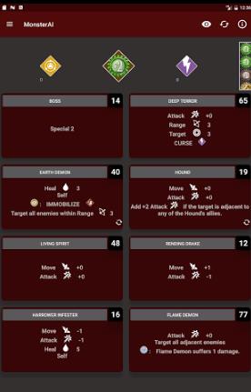对于Gloomhaven它模拟的怪物动作甲板中的应用。它简化了游戏的设置,加快游戏(少洗牌)的设置。该应用程序有甲板行动在游戏中每一个怪物种类。它可以让玩家轻松管理怪物甲板卡现在的遭遇。每张卡堆都有我们的历史,这与去年“洗牌”卡开始。