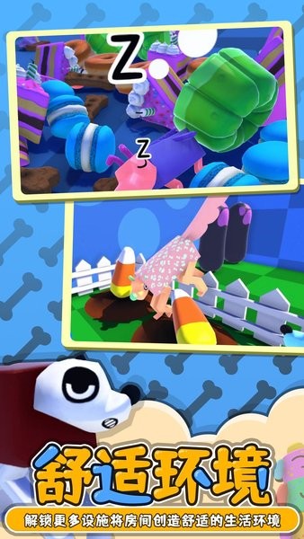 2、画风十分鲜艳的3d宠物模拟培养类游戏,玩家可以在游戏中领养一只奇怪的变异狗狗;