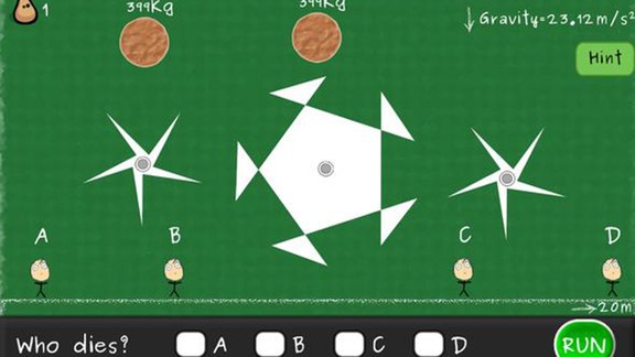 哪个会挂呢是一款把学渣们虐出翔的小游戏,巨石落下,有几个人会被砸死呢,这就需要你来计算了,巨石重量,障碍物重量,速度,加速度都会在屏幕上显示出来,你真的算算,表瞎蒙!