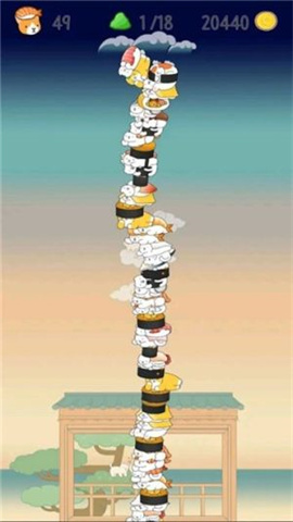 3.因为游戏中的寿司猫和猫不是标准的圆柱体,所以寿司猫和猫塔比较容易倾斜。