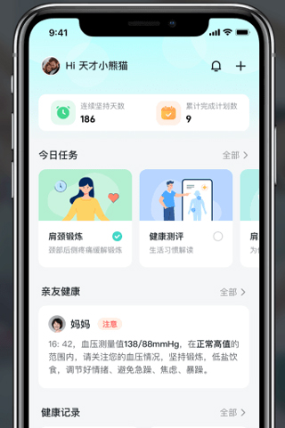添加亲友后,可查询亲友健康数据,还可向已添加亲友发送关爱消息提醒,及查询已添加亲友发送给我们的关爱消息提醒,通过推荐查询彼此健康数据,达成远程关怀。