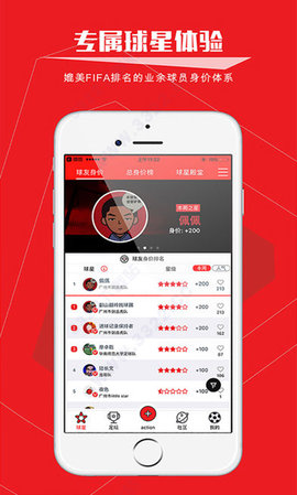 4、全球领先的身价系统,计算你的足球身价,做出权威排名。 可以比较全国各地球手的身价
