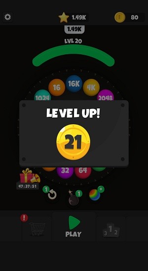 1、玩家在游戏中需要将两个相同的数字结合在一块,通过持续的升级赚取更多的金币。