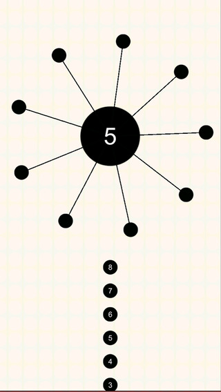 【简单大方,黑白扯配】游戏画面很简单,米白色的背景中央,放置着一个不断旋转的太阳状的球体,周围网状似的放射连接着很多小球,又有点宇宙中星球的感觉,所有球体均以黑色为主,与米白色的背景产生出了鲜明的对比,在一定量上,为玩家带来了肯定的视觉冲击感。