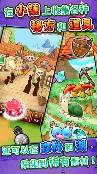 5、你也可以在周围的商店与森林搜集一些稀缺的素材制造出新奇的货物。6、吸引更多的客人前来光顾,并渐渐扩大你的业务,直到成为大家最喜欢的杂货店。