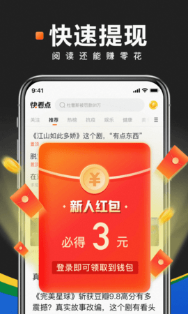 快看点极速版苹果旧版是一款可以在线看资讯和视频的软件,为用户们带来各种能赚钱的机会。只须完成阅读任务,就能获得各种奖励,丰富优质的阅读内容。基于云数据算法,实时的为用户推送喜欢的内容,东京奥运会也能实时观看哦!喜欢就下载体验吧!