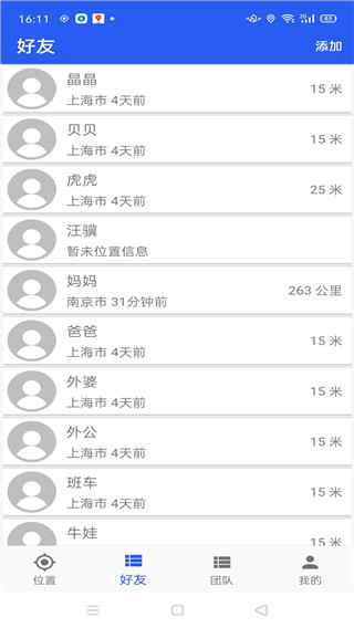 4、位移提醒位移提醒功能,好友进入离开指定地区实时提醒,预防走失。