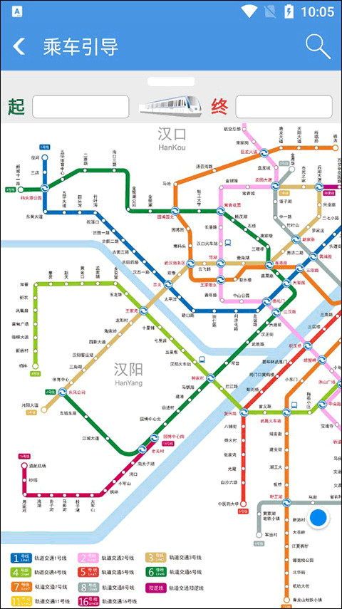 进入界面后大家可以看见整个武汉地铁的线路图,这时大家仅需设置好起点和终点就能了。