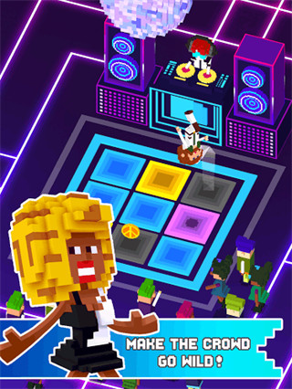 2、控制人物跳到亮起的方格里游戏中舞池由9个格组成,通过上下左右滑动控制人物跳在亮起的方格内.游戏主人公会以一个托马斯全旋接转体720度,倒栽葱在方格内.跳在亮起的方格内则胜利,不然会碎成一堆马赛克就此退出舞台.当人物合着步伐准确跳在方格上,音效会出现变化
