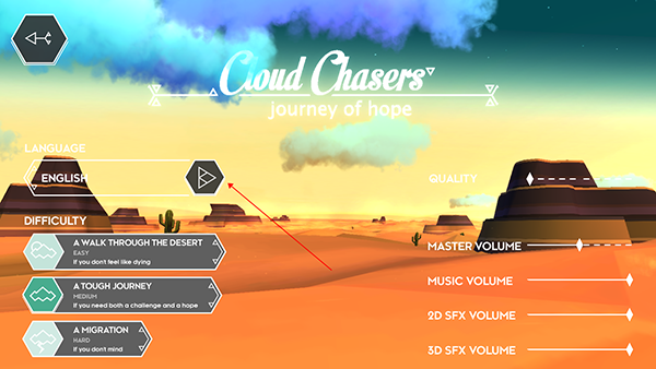 #剧情#存活#动作#冒险#角色饰演云之追逐者中文版是一款画面很极致美感的沙漠题题材冒险游戏。本作是一款融合了 Roguelike 玩法的另类存活游戏,在 GDC 和 E3 展会上都获得过奖项。游戏故事背景设定在浩瀚无垠的沙漠,玩家要控制一对父女在这片荒芜之地进行冒险,并完成探寻新家园的使命。水是在干旱的沙漠里需要的要紧资源,想要存活非常重要的就是水源,所以你需要通过你的努力找到,并且存活下来,同时也可以用来在城镇中交换各种物品,另外游戏里边需要作出的决定都会干扰到人物生死,要小心选择。引导一对父女通过五个致命的沙漠到达云巅通往世界的大门,这是一个充满独特遭遇的危险旅程,明智地做出决定,管理你的资源,借助你的设施优势,用滑翔机飞上云端填补你的水储存。如此一款充满创意,又屡屡获奖的新作,你怎能不尝试一下呢?