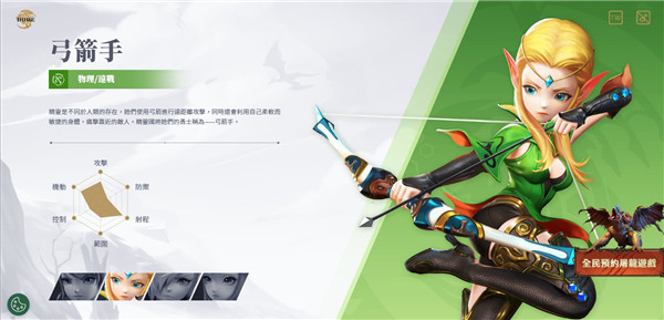 若你想要远距离与敌方交战,则可以选择弓箭手,这个职业融合了远程攻击和精妙好使的近战动作,绝佳的机动性随着著较弱的防御力,所以请务必持续移动,防止遭受致命伤害!