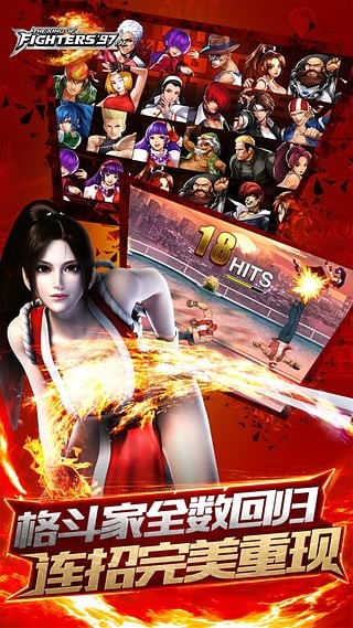 游戏由日本SNK正版授权,并全程参与监修,高度还原“拳皇”系列精髓。数十位拳皇角色轮番亮相,人物、技能、音效全部还原《拳皇97》,唤醒童年热血情怀!