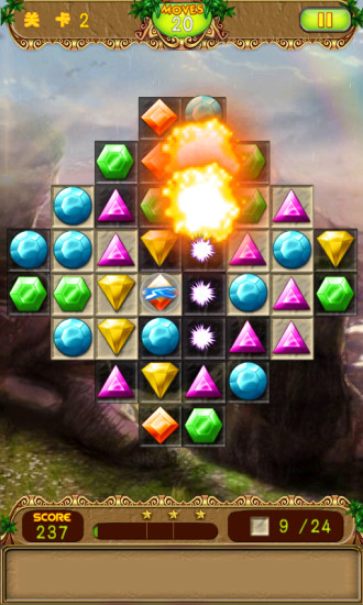 一款跨平台的宝石消除类游戏,和相同种类游戏不一样的是这款游戏趣味性特别高,连续消除宝石后,游戏会奖励有多种道具供你用,擅用道具甚至有一发逆转的成效,一款跨平台的宝石消除类游戏,和相同种类游戏不一样的是这款游戏趣味性特别高,连续消除宝石后,游戏会奖励有多种道具供你用,擅用道具甚至有一发逆转的成效,但总有感觉惊慌失措的时候,有时明明三个宝石就在眼皮底下看了一遍又一遍都没发现,还在着急时间不够。忽然发现原来宝石就在眼前,连忙点到一块,才会发现原来会这么高兴,同时会有种如释重负的感觉。同时,这款游戏不单单只不过单纯把三个宝石连在一块那样简单,有时通过空间的计算可以动一颗宝石连不少颗宝石,获得更高的分数,是一款简单但又需要脑力与眼力的游戏,快来试一试吧!