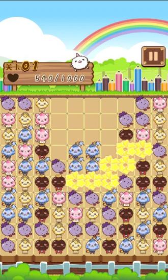爱消萌萌哒是一款画面很可爱的消除闯关游戏,游戏的玩法非常简单,连接2个和2个以上的萌脸消除,连接越多,获得的分数就越多。玩家仅需移动屏幕上相同的动物,让它们处于同一直线上就能将它们全部消除,当超越3个相同的动物被消除时,就会产生有特殊技能的动物,点击它会有意料之外的成效哦。需要在每一关中获得肯定的分数才能过关,不然游戏失败。