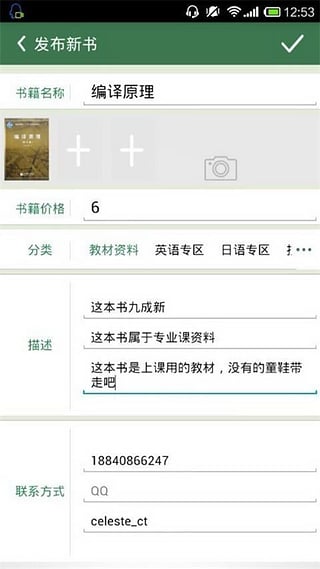 3)发布二手书时,同学们可以通过扫描条形码等简单几步完成书本上传,省事又省力;