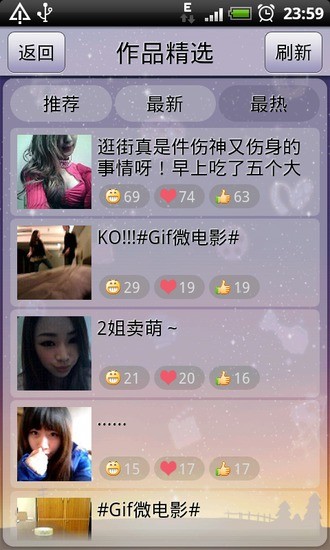 1.Gif微电影社区功能满足玩家通过手机APP就能看到自己及其他人推荐的各种有趣好玩的GIF作品,并可以和其他玩家互动。