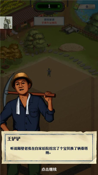 王铲铲的致富的道路是一款经典怀旧风格所塑造的模拟培养游戏,全新的经营玩法,90年代怀旧画面,以挖宝玩法为主,通过挖掘地下更多的宝贝赚取收益,可以雇佣你们村里的人一块挖掘宝贝,有钱大伙一块赚,超多挑战任务等你来完成。在游戏中你将从挖土开始打造是我们的财富中心,升级设施,挖出的古董还可以进行展览,玩法趣味丰富,叫你体验到当老板的滋味。同时可以召集村民挖地,获得各种物品,售卖赚取资金并进步村庄的运输行业和工厂,升级角色的挖掘速度,可挖掘更深层更有价值的物品,建造仓库等各种建筑,轻松的放置挂机体验带动村庄致富的道路吧。今天带来的是王铲铲的致富的道路中文破解版,游戏已经被大神进行修改,解锁免广告,界面不会有广告弹窗,钞票不减反增,有兴趣朋友欢迎下载体验吧。