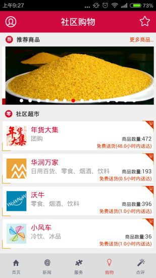 附近超市、小吃速食、水果甜点等,社区周围企业都已解决,并有打折优惠惊喜。