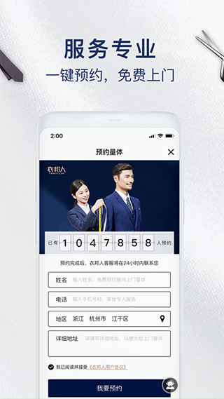衣邦人app是由杭州贝嘟科技公司塑造的一款定制服饰软件。有专业的设计师在线助你设计,更有美女上门量身,仅需在衣邦人app预约装着顾问,免费上门量体裁衣,不需要外出就能量身打造既合身又彰显个性的商务服饰,在APP内你可以参考我们的爱好挑选面料和个性化定制细节,享受专用一对一的着装顾问贴身服务。衣邦人让广大商务白领不出门即可体验到尊贵的量身打造服务。假如你要参加什么晚会或者是在日常想要一套专用的衣服的话,可以来这里看看,快点下载体验吧!