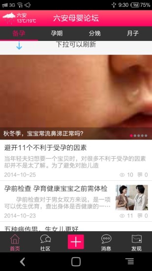 六安母婴平台app是一款专业的母婴平台移动推广客户端。可以为各位准母亲解决各种在孕期间的疑难问题,里面的母婴平台交流通畅活跃,是各位六安准母亲应具备的手机APP。