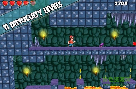 4、操纵主人公大叔一路跑跳来跨越3个世界,穿越11个精彩刺激的关卡。