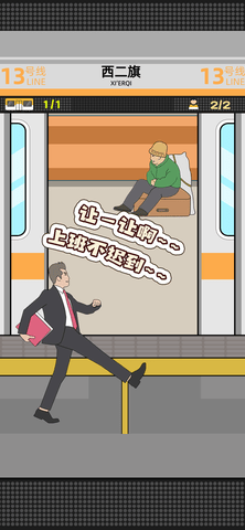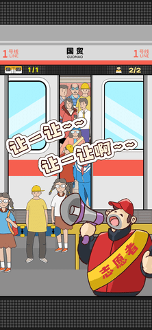 用户作为列车员,帮助工薪族挤进地铁,到达目的地