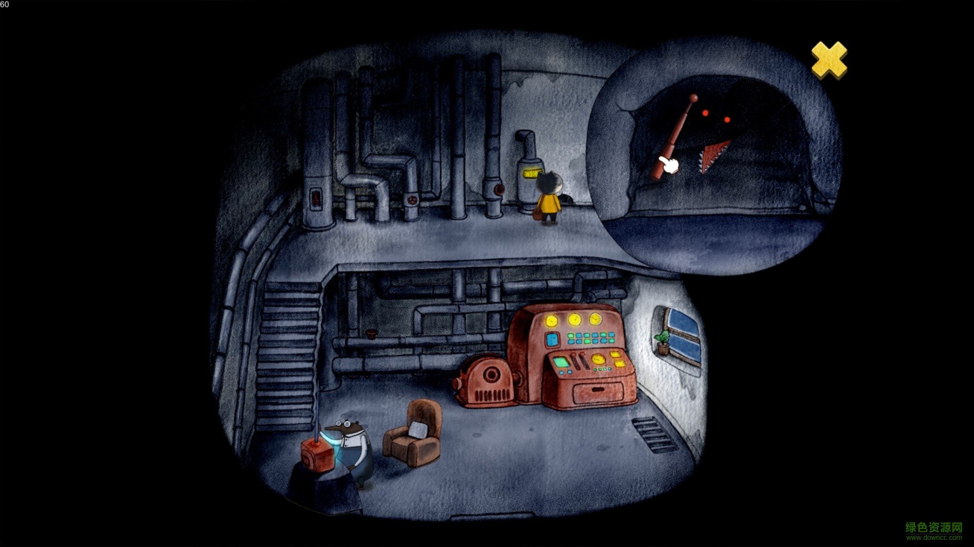 1、游戏使用了手绘的黑暗风格,处处都充满了神秘的色彩,故事发生在一辆列车上;