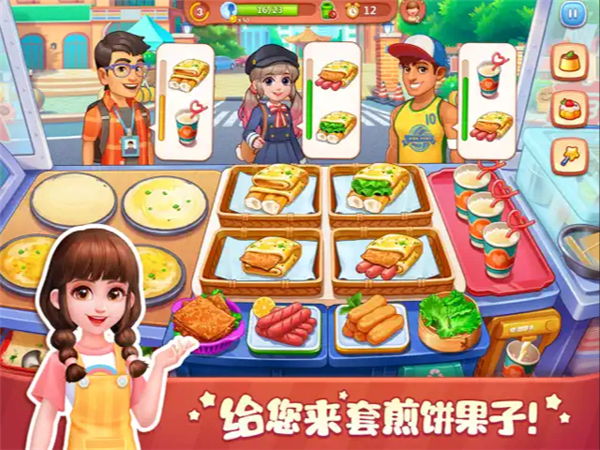 1、烹饪料理,服务客户:依据需要制作美食,挑战一秒三单,还能赚取更多金币!