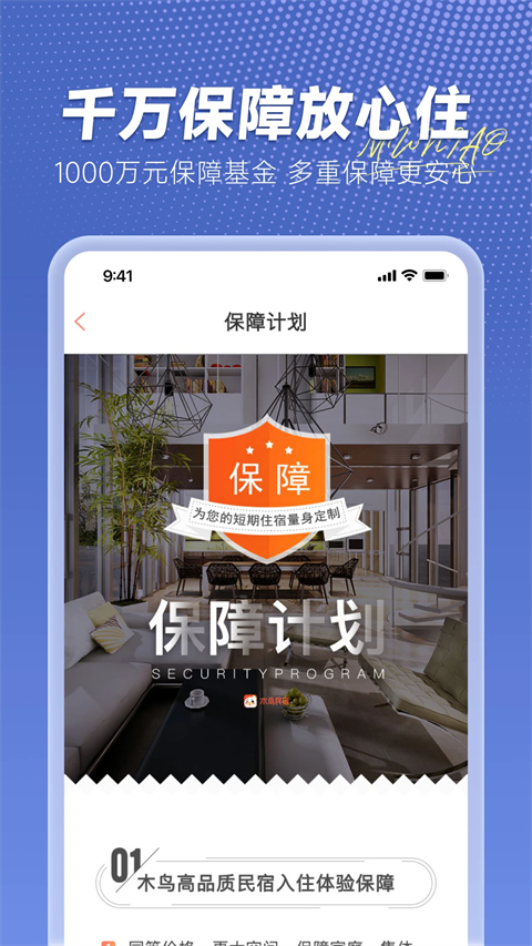 移动APP便捷快捷随时随地随性订房看房,更有木鸟短租千万资金房客保障计划伴随,放心入住!