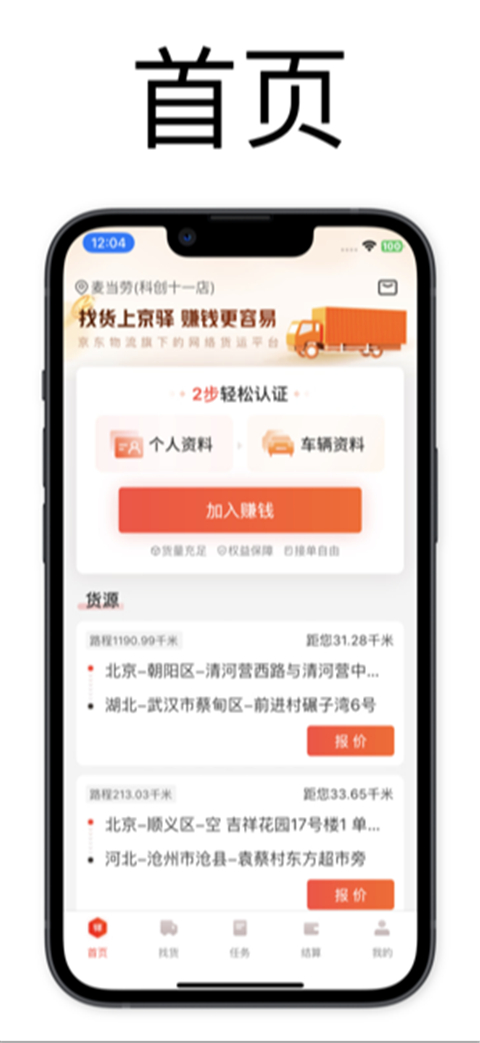 1、迅速注册与一键接单:司机可以通过京驿货车APP进行迅速注册,完成后可以一键接取国内的订单,覆盖360个城市,提供百亿进货渠道,确保进货渠道充足。