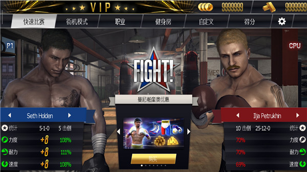 3、点击迅速比赛,有没有看到对手的属性才60?速度击倒对手,继续下一场,打完四场比赛后,去练习房立刻完成小游戏练习,三围在70以前,有钱就直接买属性,只须不参加竞标赛,属性可以直接刷满