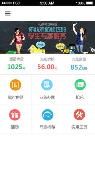 该应用涵盖套餐信息查看、免费Wcopy;IFI、点券商城、流量包办理及打折、实用工具等功能。