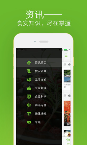 食事求是ios手机版app是一款很好的食品健康资讯应用。甄选了国内最新的食品健康资讯,便捷用户准时了解国内食品健康信息,时刻关注民生健康问题。本软件还为用户提供了贴心的食品安全咨询服务,用户可以将日常遇见的食品安全类问题进行反馈,在线专员将会为你迅速解决疑惑。用户可以将有兴趣的食品健康信息一键推荐到社交平台,让更多的人获悉食品健康的重要程度,离得远远的黑心食品!欢迎下载。