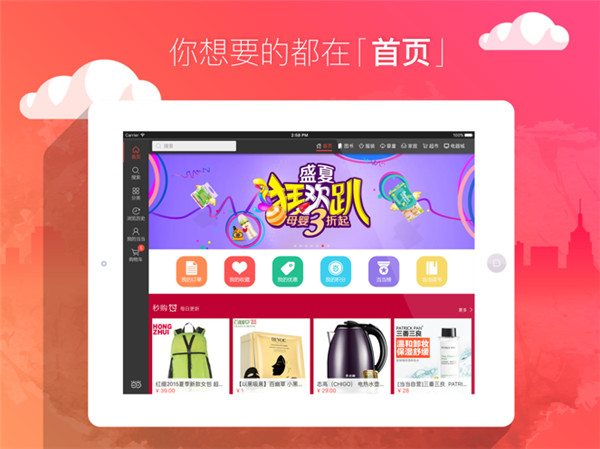 轻动指尖,百万时髦真品,随时随地尽收眼底;优化界面、搜索,轻松购物更直接,分类搜索更易迅速找到需要的产品;