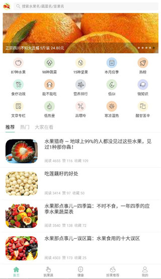 2、发现:丰富的水果专题文章,叫你更懂水果。