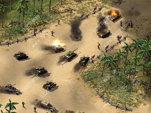 参与将领:利斯(韦维尔),卢卡斯(艾森豪威尔)VS凯塞林本关策略:刚开始美军登陆部队就与德军交火,而英军在东南面与德军对峙,建议你先卖掉碉堡,然后一边升级建造设施,一边生产部队(最好的选择是8个中型坦克团、4个重型坦克团),部队完成组建后飞速分兵两路扑向当面的德军,另外本关开始可以拥有空军了,建议你造4座机场,共能出动8架轰炸机,你可以指挥英国皇家空军掩护你的地面部队进攻德军,当占领西北的两座城市后即告过关。