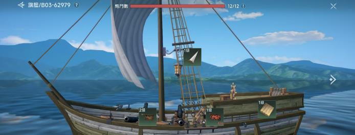 2、配件方面火炮数目不超炮门上限,优先金色主炮,留1/4仓位应敌。前期生产紫色船帆,护甲选带损伤减免词条,中期塑造第三章解锁图纸的三联装加农炮,以此提高舰队实力。