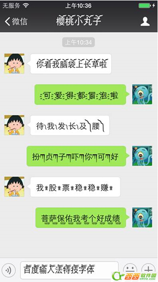 为了给用户增加更多惊喜,提高输入法的愉悦体验,百度输入法iOS新版还别出心裁地推出了独家的凌乱特技字体,比如用户用了“凌乱特技の单字变变变”成效,则在输入时每一个字的特技都不同,除去随机更换特技成效以满足用户时刻寻求变化的新鲜感外,也让用户的聊天内容愈加引人注目,同样的内容打出了不同的成效。