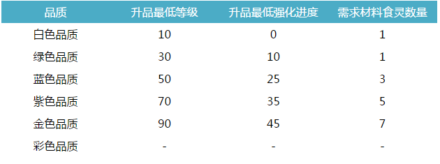 当食灵到达肯定的等级强化进度后可以升品进一步提高食灵能力。