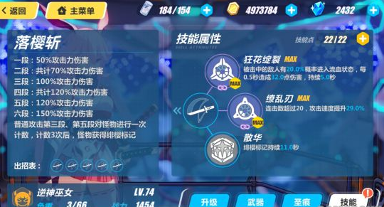 落樱斩:共计6段攻击,3、五段攻击会对怪物计数。计数三次,怪物获得绯樱标记