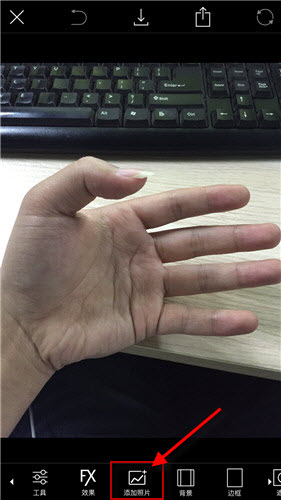 第二步:进入之后,找到之前拍的那张手的照片,在这里帅比鹏要提醒大伙,拍手的照片的话,建议最好是如下图所示的姿势,不然最后做出来的成效,会感觉手机被遮住了。